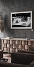Questo sorprendente poster in bianco e nero mostra la parte anteriore di un'auto da corsa vintage con il caratteristico emblema "1c". Le curve eleganti, i riflessi raffinati e i dettagli senza tempo catturano l'età d'oro degli sport motoristici e ne fanno un'opera d'arte sofisticata per gli appassionati di auto d'epoca.