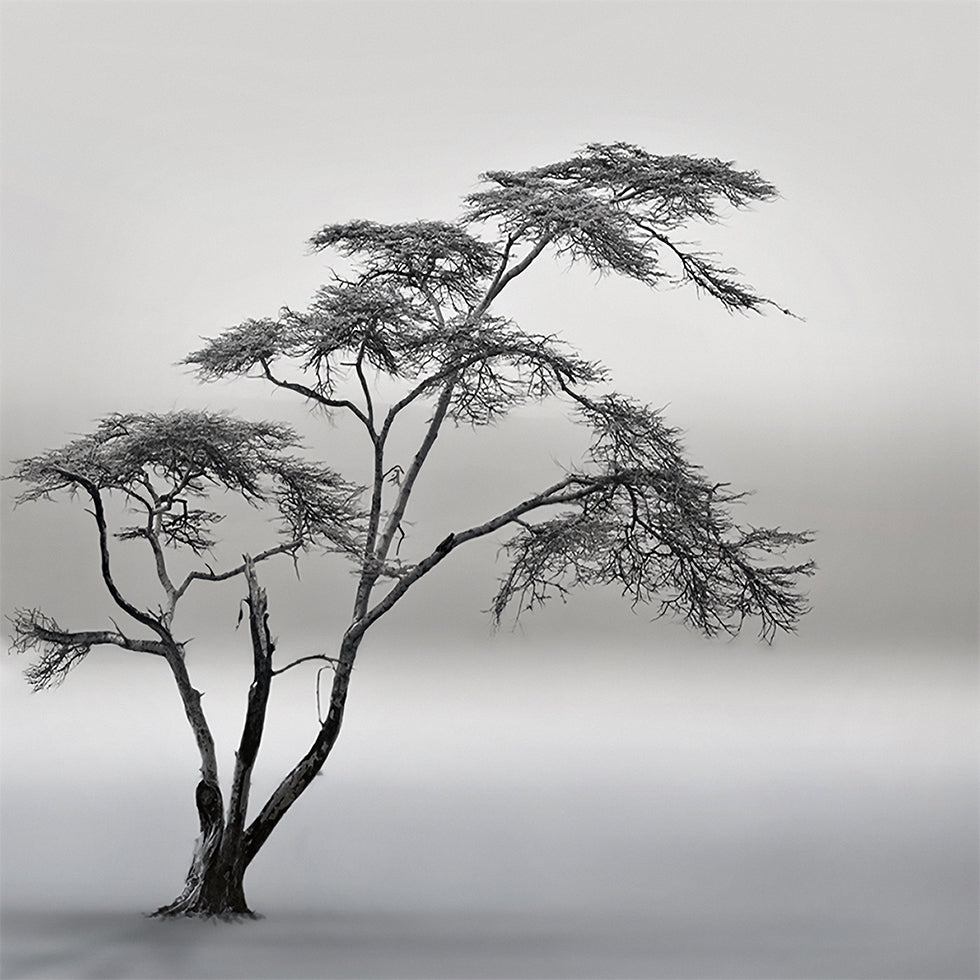 Un albero solitario si staglia nella fitta nebbia sopra la savana a Naivasha, in Kenya. L'atmosfera monocromatica cattura il silenzio, la profondità e il paesaggio aperto, dove il tempo e la distanza si fondono. La fotografia "una storia molto lunga" è stata creata da Piet Flour e trasuda calma, poesia e riflessione. Un'immagine di desiderio, spazio e orizzonte infinito.
