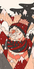 Un accogliente gatto invernale sale sul palco in un paesaggio innevato, dove morbidi fiocchi cadono sulle montagne silenziose sullo sfondo. Lo stile caldo e cartoonesco diffonde l'allegria e la calma del Natale, perfetto per il soggiorno nella stagione fredda. Un'illustrazione affascinante di Stephen Wade che cattura sia il gioco che la fantasia. Una cartolina invernale da appendere al muro.