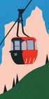 Un'illustrazione grafica audace e giocosa di una funivia rossa che scivola attraverso le Alpi. Con linee pulite, colori piatti e un'estetica da viaggio retrò, l'opera cattura la gioia dell'avventura in montagna e il fascino senza tempo dei trasporti in alta montagna in uno stile moderno e artistico.