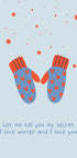 Un poster invernale di Ohkimiko: due morbidi guanti lavorati a maglia che si incontrano in un cuore, circondati da fiocchi di neve che cadono e fresche sfumature blu-grigio. Un omaggio poetico al freddo e all'amore: crea intimità nel soggiorno, nell'ingresso o nella cameretta dei bambini, con la calma e la quiete grafica semplice e nordica. Ideale come regalo amorevole durante l'Avvento e il Natale.