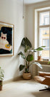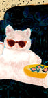 Un gatto bianco e sicuro di sé con occhiali da sole posa in un colorato universo pop-art dove le vibrazioni retrò incontrano la spavalderia contemporanea. Umorismo, intimità e un tocco di spuntino a base di pesce rendono il motivo giocoso e affascinante. Pastelli chiari e tonalità vintage sollevano il muro. Idea regalo perfetta. Un poster eccentrico dell'artista Uma Gokhale. Ideale per soggiorno e ufficio.