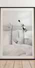 Una giocosa stampa artistica in bianco e nero che mostra mani che tengono una bottiglia di Aperol e un bicchiere di vino su morbide lenzuola bianche. Minimalista ma sorprendente: un'opera d'arte divertente ed elegante, perfetta per interni moderni, cucine, bar o camere da letto con un po' di personalità in più.