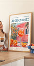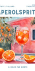 Una rinfrescante stampa artistica ad acquerello di Aperol Spritz, con un bicchiere luminoso dell'iconico cocktail italiano circondato da arance succose e un giardino estivo. Quest'opera d'arte cattura l'essenza di la dolce vita ed è perfetto per cucine, sale da pranzo ed eleganti aree bar.