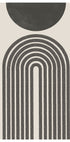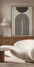 Una stampa astratta minimalista ispirata allo stile di metà secolo con audaci archi neri che si estendono verso un solido cerchio nero. La semplicità geometrica delle linee e l'equilibrio circolare rendono quest'opera d'arte un pezzo accattivante di decorazione murale moderna.