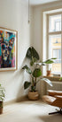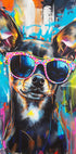 Un vivace ritratto pop art di street art di un Chihuahua che indossa occhiali da sole colorati, dipinto con tratti audaci ispirati ai graffiti. Questa opera d'arte giocosa e moderna combina umorismo, stile ed energia urbana per aggiungere un'atmosfera divertente e audace a qualsiasi spazio.