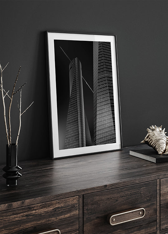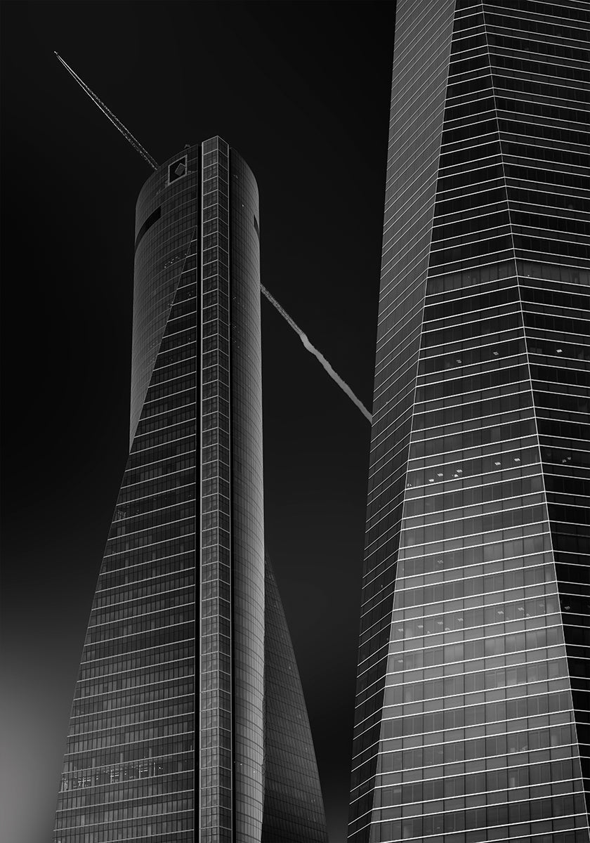 Buon viaggio!! di Jorge Ruiz Dueso cattura il polso di Madrid in un drammatico bianco e nero: un aereo taglia il cielo sopra una città di cupole e grattacieli, dove le facciate classiche incontrano le linee pulite del CTBA. Un paesaggio urbano grafico e senza tempo che unisce voglia di viaggiare, grande ufficio e poesia architettonica in un solo sguardo. Il motivo rende omaggio a Madrid dal livello della strada fino allo skyline.