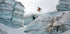 Uno scatto d'azione mozzafiato dello sciatore freestyle Candide Thovex che si libra in aria tra enormi ghiacciai di ghiaccio. Scattata a Chamonix, in Francia, questa immagine cattura l'adrenalina, l'abilità e lo spirito coraggioso degli sport invernali. Il paesaggio ghiacciato e il salto che sfida la gravità ne fanno un tributo iconico all'avventura e allo sci estremo.