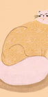 Un'illustrazione stravagante di un gatto bianco che indossa un maglione giallo burro fantasia con motivi ondulati. Lo stile moderno e accogliente, combinato con una tenue tavolozza pastello, lo rende perfetto per interni eclettici, camerette per bambini o come divertente opera d'arte per gli amanti dei gatti.