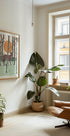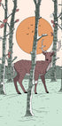 Deer In The Forest di Nicholas è un poster minimalista che raffigura un cervo fiero che sta calmo tra esili betulle in un gelido paesaggio forestale. Le tenui tonalità del verde e del crema incontrano linee grafiche e una delicata luce solare, creando un'atmosfera tranquilla di ispirazione giapponese per il soggiorno, la camera da letto o l'ufficio.