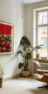 Le cime delle montagne dorate e rosse si innalzano in strati di forme geometriche, come un paesaggio invernale trapuntato immerso nella tranquilla luce di dicembre. Pendii punteggiati di neve e profonde sfumature carminio incontrano fini accenti dorati e creano ritmo e calma. Un paesaggio moderno e festoso di Stephen Wade, ideale per il minimalismo nordico. Perfetto come accento di colore caldo nel soggiorno o nell'ingresso.