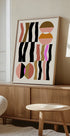 Questa opera d'arte geometrica astratta presenta forme audaci e toni della terra in contrasto con il rosa e il nero su uno sfondo bianco puro. Ispirata all'estetica Bauhaus, la composizione combina equilibrio, ritmo e minimalismo moderno, creando un pezzo sorprendente che eleva qualsiasi interno moderno.