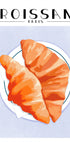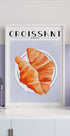 Un'affascinante illustrazione gastronomica che celebra il croissant francese, servito su un piatto dai caldi toni del marrone dorato. Con il testo "Croissant Paris" scritto in caratteri tipografici eleganti, quest'opera d'arte cattura lo spirito dei caffè francesi e della cultura della colazione. Una bella stampa per cucine, sale da pranzo o per chiunque ami lo stile parigino e i prodotti da forno.