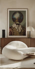 DiscoHead King / Altered Collage Art di The Art Concept - Carta di qualità premium con una superficie liscia e opaca e una sensazione elegante. La finitura opaca riduce i riflessi e dona un look raffinato e senza tempo. Robusto e durevole per un uso duraturo, ideale sia per ambienti professionali che per espositori decorativi.