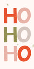 En legende, moderne juleplakat med det ikoniske “HO HO HO” sat i stor, grafisk typografi. Klare rød-, grønne og rosa farver skaber stærke kontraster og en frisk, minimalistisk stemning. Den rene komposition og rytmen i gentagelsen giver væggen energi og øjeblikkelig julestemning. Perfekt som grafisk statement i stue, entré eller børneværelse.