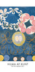 Hilma di Klints "I dieci più grandi n. 1" mostrando forme floreali astratte e motivi vorticosi in vivaci tonalità blu, rosa e gialle. L'opera rappresenta l'arte spirituale e astratta dell'inizio del XX secolo con un focus su elementi simbolici ed esoterici.