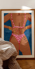 Il poster My Ass My Rules è un'opera d'arte coraggiosa e potente che celebra la fiducia nel corpo e l'autodeterminazione. Il pezzo presenta una figura abbronzata in un audace bikini rosa con un motivo a fragole che evidenzia in modo indiscreto le smagliature naturali e il testo disegnato a mano "My Ass My Rules" sulla coscia. Lo sfondo testurizzato blu intenso fornisce un netto contrasto, mentre i gioielli in oro e le unghie rosso brillante aggiungono un tocco di glamour. Perfetto per interni contemporanei, spazi potenziati e amanti dell'arte che abbracciano un'espressione di sé senza compromessi.