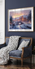 Una suggestiva città natalizia si svolge sotto la neve soffice, dove fini fiocchi di neve cadono su case accoglienti e alberi di pino. Le persone si muovono tra finestre luminose e strade buie, mentre le pennellate conferiscono al soggetto un fascino pittoresco e senza tempo. Perfetto per catturare il calore nel freddo bagliore dell'inverno. Appendilo in soggiorno per un'accogliente atmosfera natalizia.