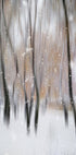 Una tranquilla atmosfera invernale si svolge in un paesaggio innevato, dove tronchi d'albero scuri si stagliano come sagome grafiche contro un cielo morbido e luminoso. La neve che cade sottile rafforza il silenzio, mentre tra i rami si avvertono tracce di vita. Alexander Kiyashko cattura la fresca poesia e la calma senza tempo della stagione. Un tranquillo tributo alla tavolozza grafica invernale della natura.