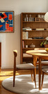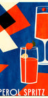 Un poster grafico audace e colorato dell'iconico cocktail Aperol Spritz, caratterizzato da forme geometriche nei vivaci colori arancione, blu, bianco e nero. Con il suo design modernista e l'energia giocosa, l'opera d'arte cattura l'essenza della cultura dell'aperitivo italiano, perfetta per cucine, bar e spazi sociali.