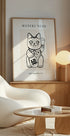 Poster del gatto fortunato Maneki Neko presenta un disegno minimalista dell'iconico gatto fortunato giapponese, noto per portare fortuna e prosperità. Caratterizzato da un'illustrazione nera pulita su uno sfondo morbido e neutro, questo pezzo combina il simbolismo culturale con la semplicità moderna. Perfetto per aggiungere un tocco di fascino e positività a salotti, uffici o come regalo premuroso per gli amanti della cultura giapponese e dei portafortuna.