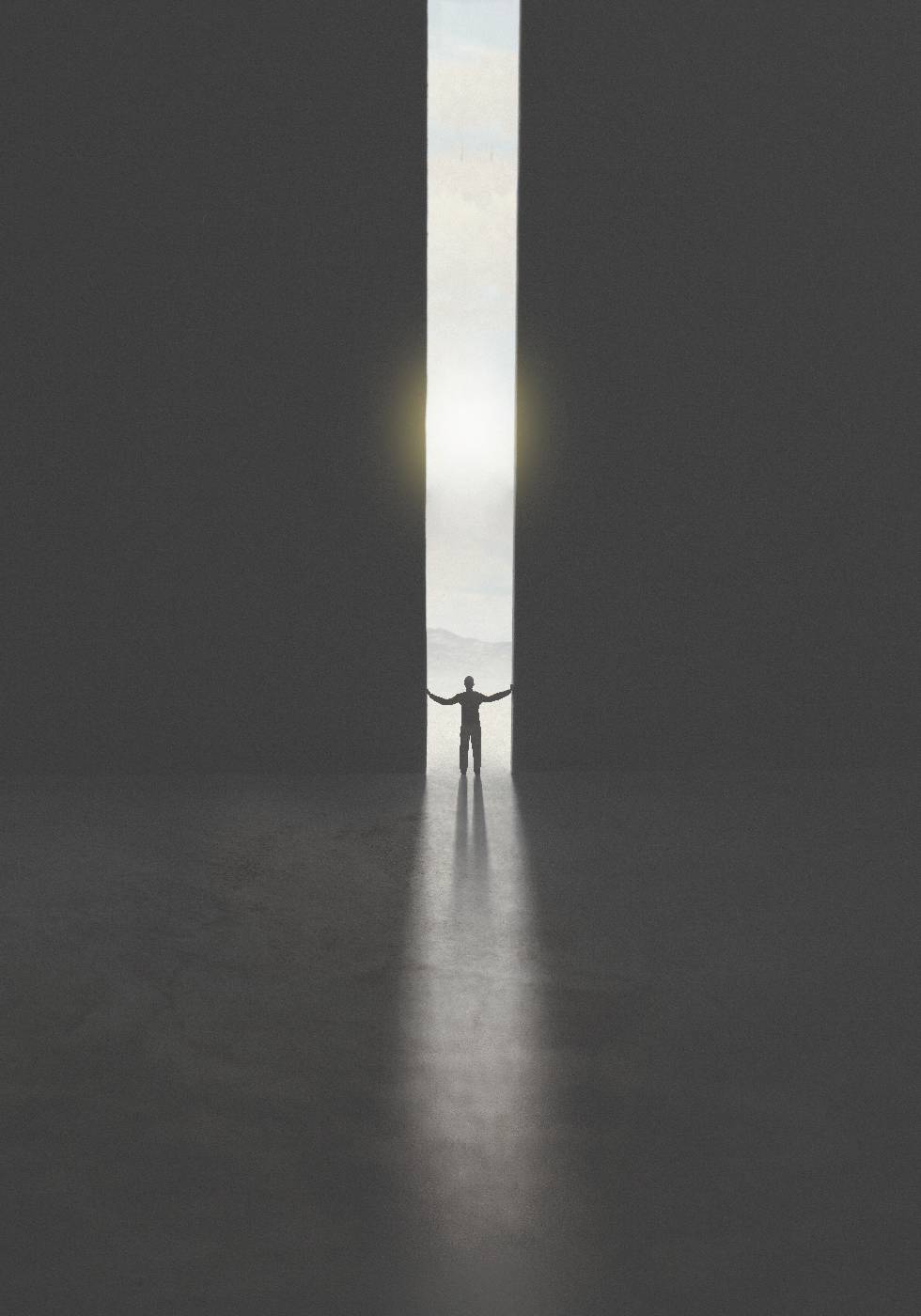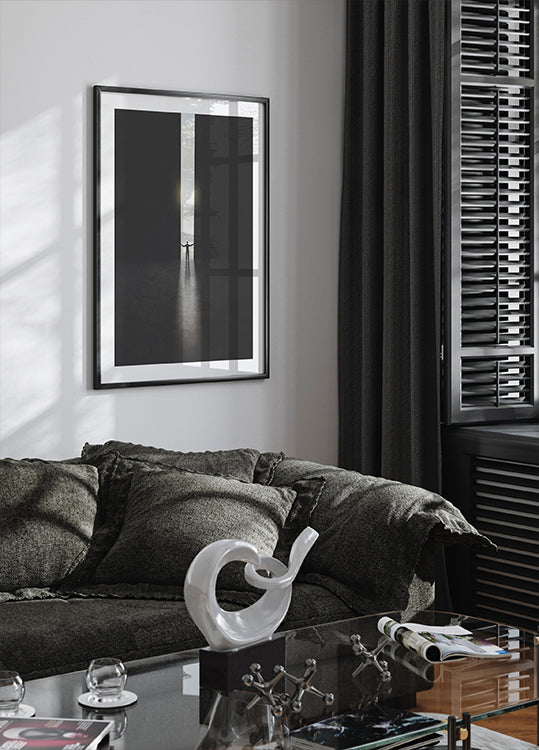 Il poster Out of Darkness* è un'opera d'arte fortemente surreale che simboleggia la forza, la speranza e i nuovi inizi. Una persona sola si trova davanti a una porta gigantesca, spinge da parte l'oscurità e lascia entrare la luce. Questa immagine minimalista ma potente rappresenta il superamento degli ostacoli, lo sviluppo personale e il passo verso un futuro più luminoso. Perfetto per case, uffici, sale terapeutiche o come regalo di ispirazione.