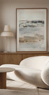 Un rilassante dipinto di paesaggio astratto di Dan Hobday, con pennellate stratificate in morbide tonalità neutre di beige, bianco e grigio. Con la sua espressione costiera minimalista, l'opera d'arte combina la semplicità moderna con trame naturali, evocando calma ed equilibrio. Perfetto per interni moderni o country.
