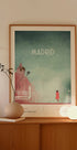 La Gran Vía di Madrid si illumina dopo il tramonto in un elegante stile retrò da poster di viaggio: tendoni luminosi, facciate art déco e ampi viali convergono sotto un profondo cielo notturno. I fari si allungano come nastri, le sagome si accumulano in uno skyline audace e i teatri e i tetti iconici della città invitano i vagabondi a divertirsi nel cuore elettrico di Madrid.