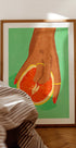 Poster sul tocco di pompelmo è un'opera d'arte moderna sorprendente e provocatoria che esplora temi di sensualità, forza e ribellione giocosa. Mostra una mano dalla pelle marrone scuro, adornata con anelli d'oro e audaci unghie dipinte di rosso, che incornicia un pompelmo tagliato a metà in un gesto simbolico e suggestivo. Su uno sfondo verde fresco e materico, i toni caldi della mano e del frutto creano un contrasto accattivante. Questo pezzo audace è perfetto per gli spazi contemporanei che abbracciano la positività del corpo, l'espressione di sé e la fiducia incondizionata.