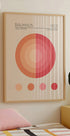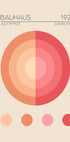 Un poster della mostra Bauhaus del 1923 con cerchi concentrici nelle calde tonalità del pesca, rosa e rosso. Questo design geometrico e minimalista cattura l'essenza del modernismo Bauhaus, combinando semplicità e forme audaci. Un'opera senza tempo per gli amanti della decorazione d'ispirazione vintage e astratta.