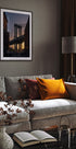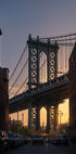 Una vista mozzafiato del Manhattan Bridge a Brooklyn, New York, catturata al tramonto con l'Empire State Building perfettamente incorniciato tra gli archi in acciaio. Questo iconico poster della città mette in risalto la bellezza architettonica e l'atmosfera urbana di New York, rendendolo un must per i viaggiatori e l'arredamento moderno della casa.