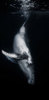 Una fotografia subacquea mozzafiato di una megattera catturata contro le profondità del Mar Nero. Questa straordinaria opera d'arte sulla fauna selvatica mette in risalto la maestosa bellezza della balena mentre scivola appena sotto la superficie, trasudando forza, calma e meraviglia.