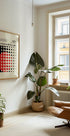 Un sorprendente poster Bauhaus Ausstellung del 1923, caratterizzato da audaci cerchi geometrici rossi e neri disposti secondo uno schema ritmico. Questo design vintage riflette l'attenzione del movimento Bauhaus su forma, colore e funzione. Un perfetto connubio tra arte e storia, ideale per interni retrò e moderni.