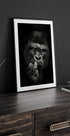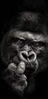 Uno straordinario ritratto in bianco e nero di un gorilla catturato in un momento di cruda intensità. Le ombre profonde e i dettagli raffinati sottolineano la forza e lo sguardo premuroso dell'animale, che conferisce all'opera d'arte un'espressione drammatica, quasi umana. Perfetto per interni moderni e pareti di gallerie alla ricerca di pezzi forti ed espressivi.