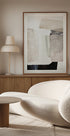 Un poster astratto minimalista di Dan Hobday con morbidi strati di pennellate in toni neutri. Le forme strutturate creano una composizione equilibrata e moderna, perfetta per interni moderni, design scandinavo o come parte di una rilassante parete pittorica.
