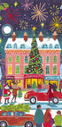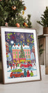 Caroline Bonne Müller cattura l'atmosfera natalizia della grande città: una strada innevata risplende di vetrine e ghirlande, mentre persone con pacchi attraversano la strada e passa un'auto con un albero di Natale. Le stelle brillano sopra i tetti e un tocco di fuochi d'artificio suggeriscono che il nuovo anno è proprio dietro l'angolo. Una scena invernale poetica, perfetta per salotti accoglienti.