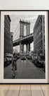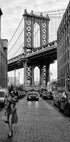 Un paesaggio urbano senza tempo in bianco e nero che cattura l'iconico ponte di Manhattan incorniciato tra i classici edifici in mattoni di Brooklyn, con l'Empire State Building perfettamente posizionato all'orizzonte. L'elegante figura in primo piano aggiunge un tocco di eleganza urbana, rendendo questa stampa una sorprendente combinazione di architettura, moda ed energia newyorkese. Perfetto per interni moderni e per chi ama la fotografia urbana.