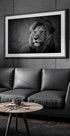 Regal di Mohammed Alnaser cattura il re della savana in un drammatico bianco e nero. Un leone maestoso esce dall'oscurità, il vento solleva la criniera e lo sguardo è concentrato e dignitoso. L'illuminazione sobria e la vignettatura discreta creano profondità e calma: un ritratto iconico e potente per pareti con carattere. Perfetto per il soggiorno, l'ufficio o lo spazio creativo.