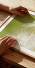 Green di Hilde Ghesquiere cattura un macro-momento poetico: morbide sfumature verdi, sottili strutture di piume e delicate gocce d'acqua che brillano come perle alla luce. Un motivo minimalista e rilassante che invita alla calma e alla contemplazione e porta in casa la silenziosa poesia della natura. Perfetto per l'arredamento scandinavo.