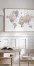 Mappa del mondo ad acquerello con città, Gouri di Rosana Laiz Blursbyai - Carta di qualità premium con una superficie liscia e opaca ed una sensazione elegante. La finitura opaca riduce i riflessi e dona un look raffinato e senza tempo. Robusto e durevole per un uso duraturo, ideale sia per ambienti professionali che per espositori decorativi.