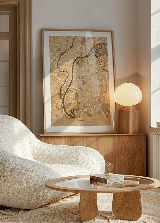 Mappa vintage seppia di Lione Francia di Rosana Laiz Blursbyai - Carta di qualità premium con una superficie liscia e opaca ed una sensazione elegante. La finitura opaca riduce i riflessi e dona un look raffinato e senza tempo. Robusto e durevole per un uso duraturo, ideale sia per ambienti professionali che per espositori decorativi.
