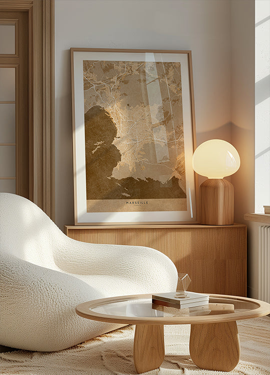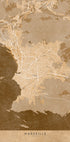 Mappa vintage seppia di Marsiglia Francia di Rosana Laiz Blursbyai - Carta di qualità premium con una superficie liscia e opaca e una sensazione elegante. La finitura opaca riduce i riflessi e dona un look raffinato e senza tempo. Robusto e durevole per un uso duraturo, ideale sia per ambienti professionali che per espositori decorativi.