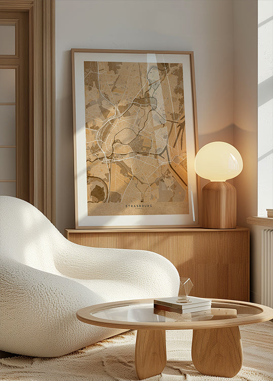 Mappa vintage seppia di Strasburgo Francia di Rosana Laiz Blursbyai - Carta di qualità premium con una superficie liscia e opaca e una sensazione elegante. La finitura opaca riduce i riflessi e dona un look raffinato e senza tempo. Robusto e durevole per un uso duraturo, ideale sia per ambienti professionali che per espositori decorativi.