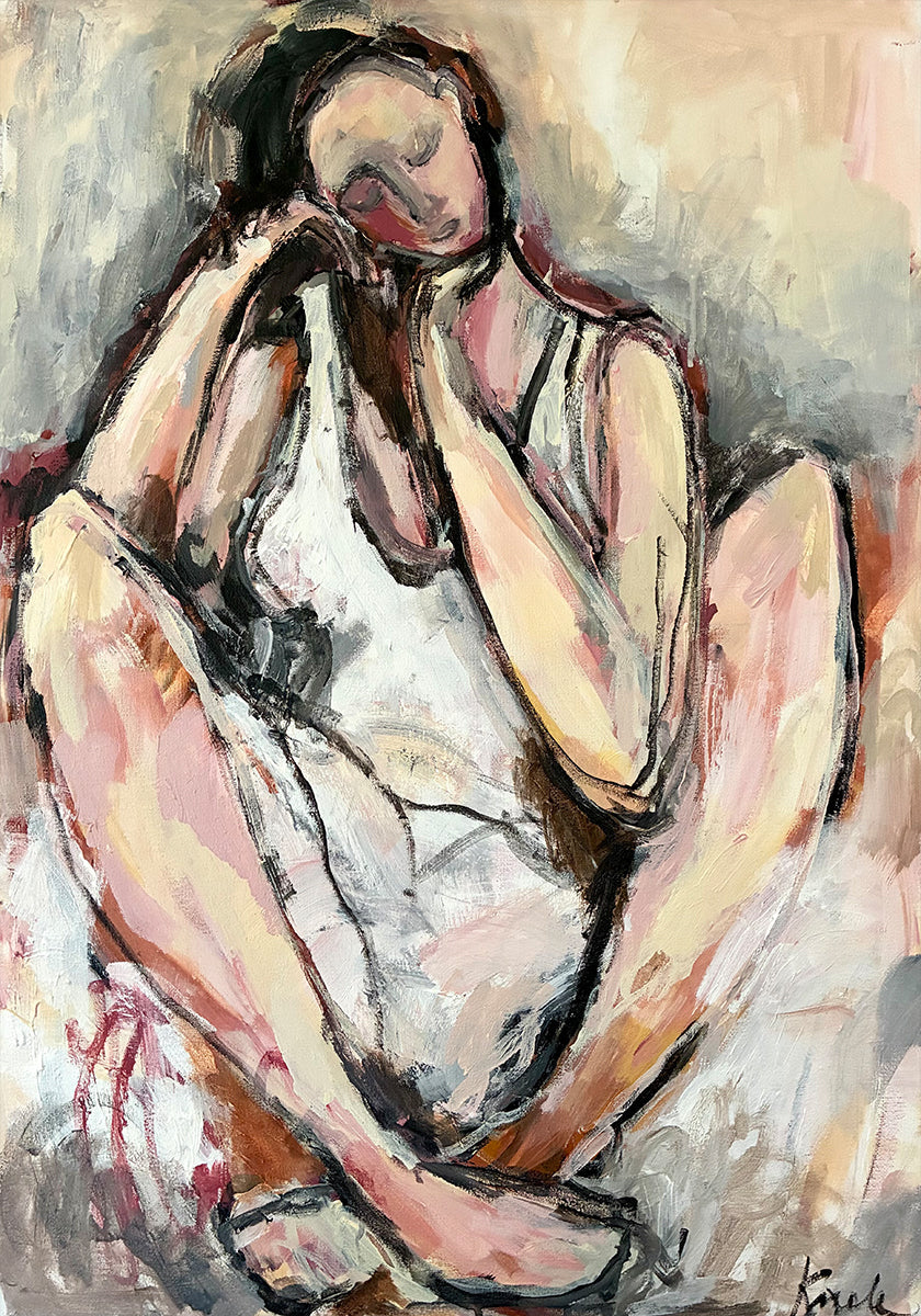 Morning di Magdalena Krzak cattura il momento di quiete tra il sonno e il risveglio: una figura femminile avvolta nei tenui toni del rosa e del bianco, con la luce del mattino che scivola sui contorni. Lo stile sottile, astratto-figurativo crea calma e riflessione e conferisce alla stanza un equilibrio poetico e femminile. Perfetto per la camera da letto o l'angolo tranquillo.