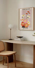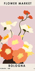 Un poster floreale audace e moderno con fiori vivaci in rosso, rosa, arancione e bianco. Ispirata ai manifesti di viaggio vintage, quest'opera d'arte mette in risalto il fascino di Bologna e del patrimonio floreale italiano.