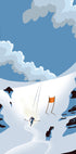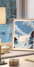 Snowy Mountain cattura il ritmo dell'inverno: un poster di sci di ispirazione retrò raffigurante un corridore di slalom che sfreccia lungo un abbagliante fianco di una montagna bianca. I toni taglienti del blu, le nuvole drammatiche e le cime frastagliate creano un senso di freschezza d'alta montagna, avventura e classica atmosfera dello sci europeo. Perfetto per risvegliare i sogni di viaggio e la voglia di curve innevate.