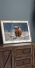 Mucca Snowy Highland di Richard Guijt - Carta di qualità premium con una superficie liscia e opaca e una sensazione elegante. La finitura opaca riduce i riflessi e dona un look raffinato e senza tempo. Robusto e durevole per un uso duraturo, ideale sia per ambienti professionali che per espositori decorativi.