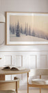 Si apre una scena poetica del paesaggio invernale: i pini coperti di neve si ergono alti mentre sottili fiocchi di neve cadono silenziosi nel crepuscolo grigio-blu. Linee e strati creano una profondità che conduce lo sguardo nella foresta ed evoca una calma malinconia nordica: silenziosa, fresca e incantevole. Perfetto per creare tranquillità invernale nel soggiorno.