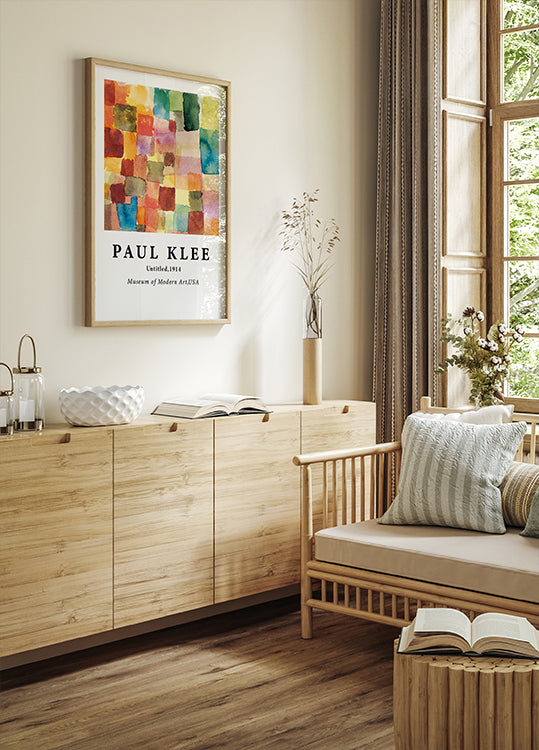 Un'opera d'arte vivace e dinamica di Paul Klee del 1914, raffigurante un mosaico astratto di colori vivaci. Questo acquerello dimostra l'abilità unica di Klee nella teoria del colore e il suo stile distintivo di astrazione geometrica. L'alternanza di tonalità calde e fredde conferisce all'opera un aspetto ritmico e armonioso, ideale per collezioni d'arte moderna.