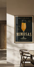Un poster art deco di ispirazione vintage con un bicchiere di mimose senza fondo e una tipografia giocosa. Perfetta per cucine, bar o sale per il brunch, questa stampa celebra lo champagne, il succo d'arancia e la gioia dei cocktail. Una vivace decorazione da parete che aggiunge fascino a feste e incontri.
